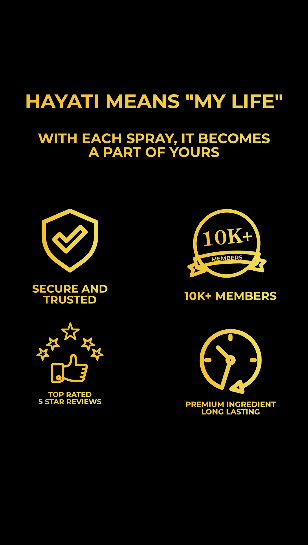 "Hayati 1 Million Oud gives me a powerful, confident edge. Its rich, captivating scent turns heads and leaves a lasting impression wherever I go. This fragrance is truly unmatched—thank you, HAYATI !"
